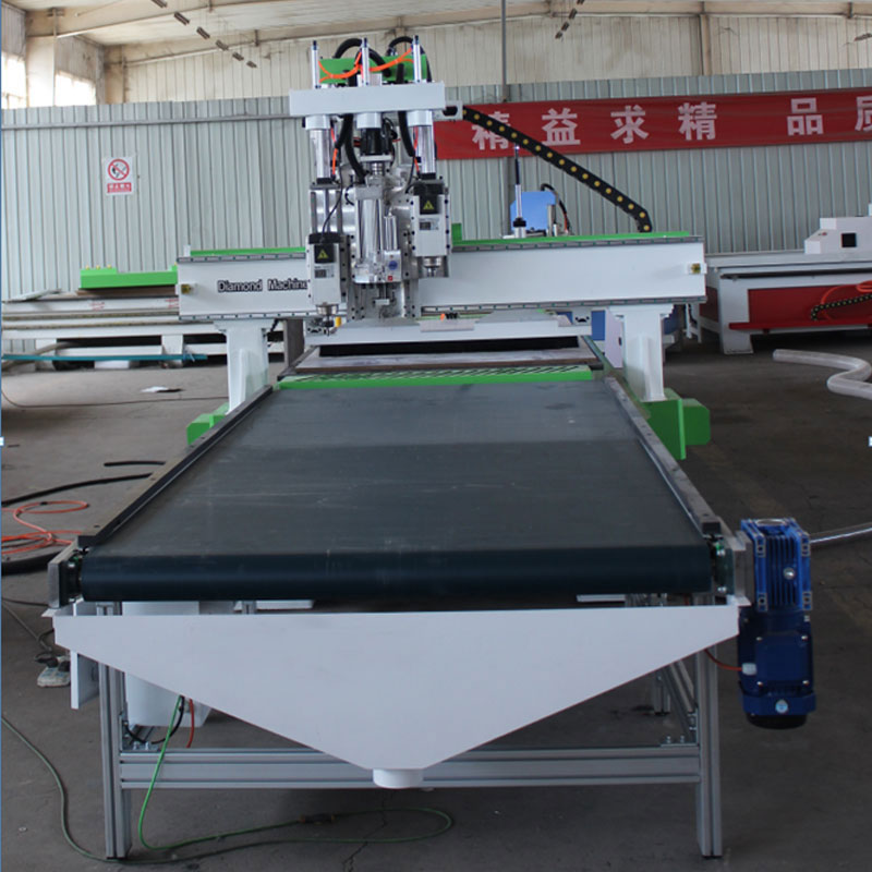 臺(tái)面:采用高密度加厚電木板,批量加工,吸附簡(jiǎn)單,上料放料簡(jiǎn)單;5.5KW吸附泵,吸力強(qiáng)勁。