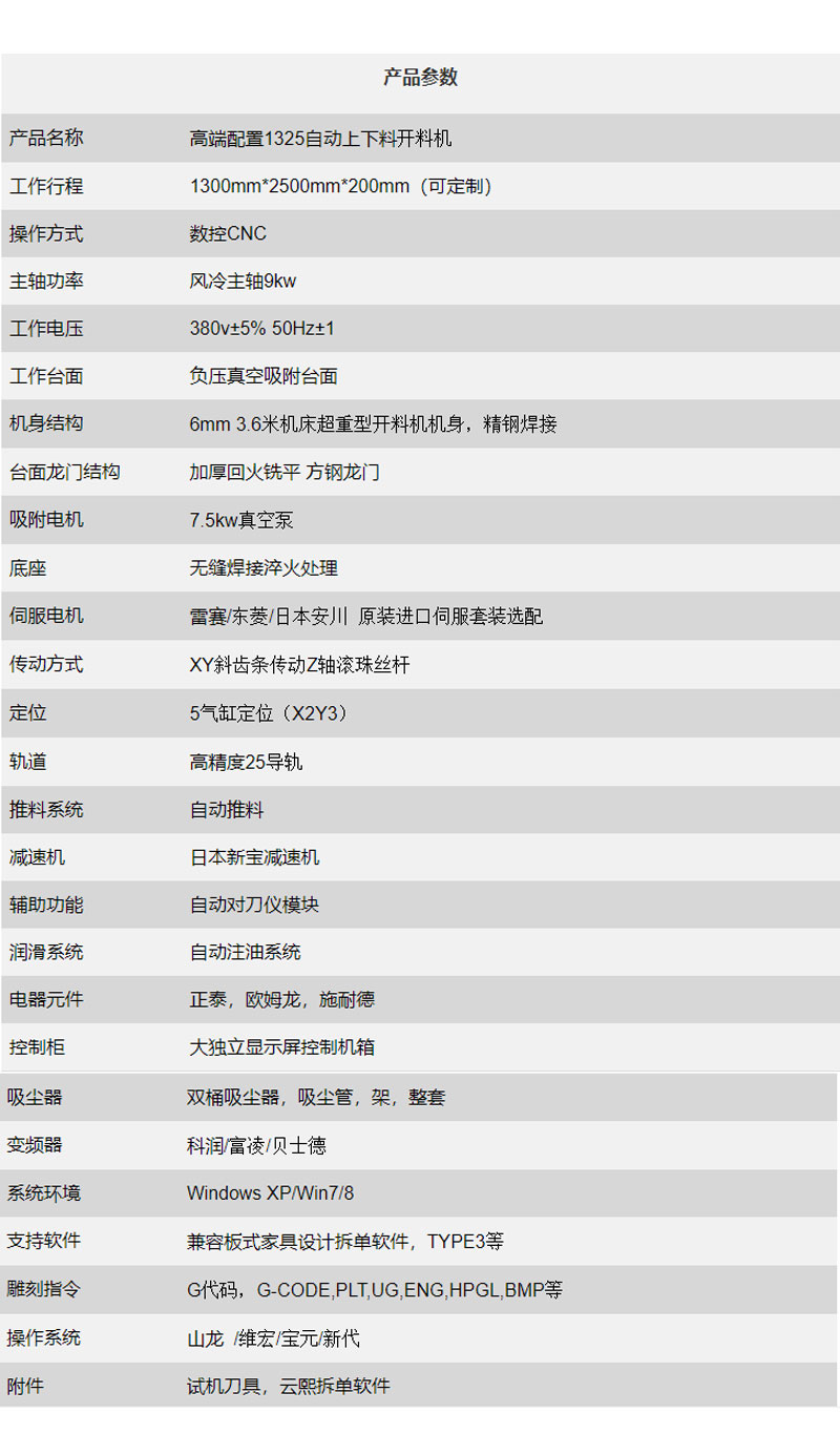 | 控制系統(tǒng) | 正版眾泰克或維宏操作系統(tǒng)(該系統(tǒng)操作比較方便,對(duì)工人文化程度要求相對(duì)較低,挺適合于切割、鏤銑、切孔、等。) |